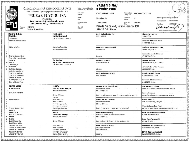 celého těla, tmavých drápků. Plně odpovídající standardu. Plnochrupá. Velmi pěkná fena.