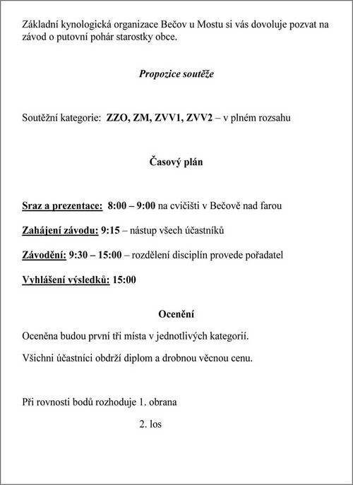O Putovní pohár starosty obce Bečov