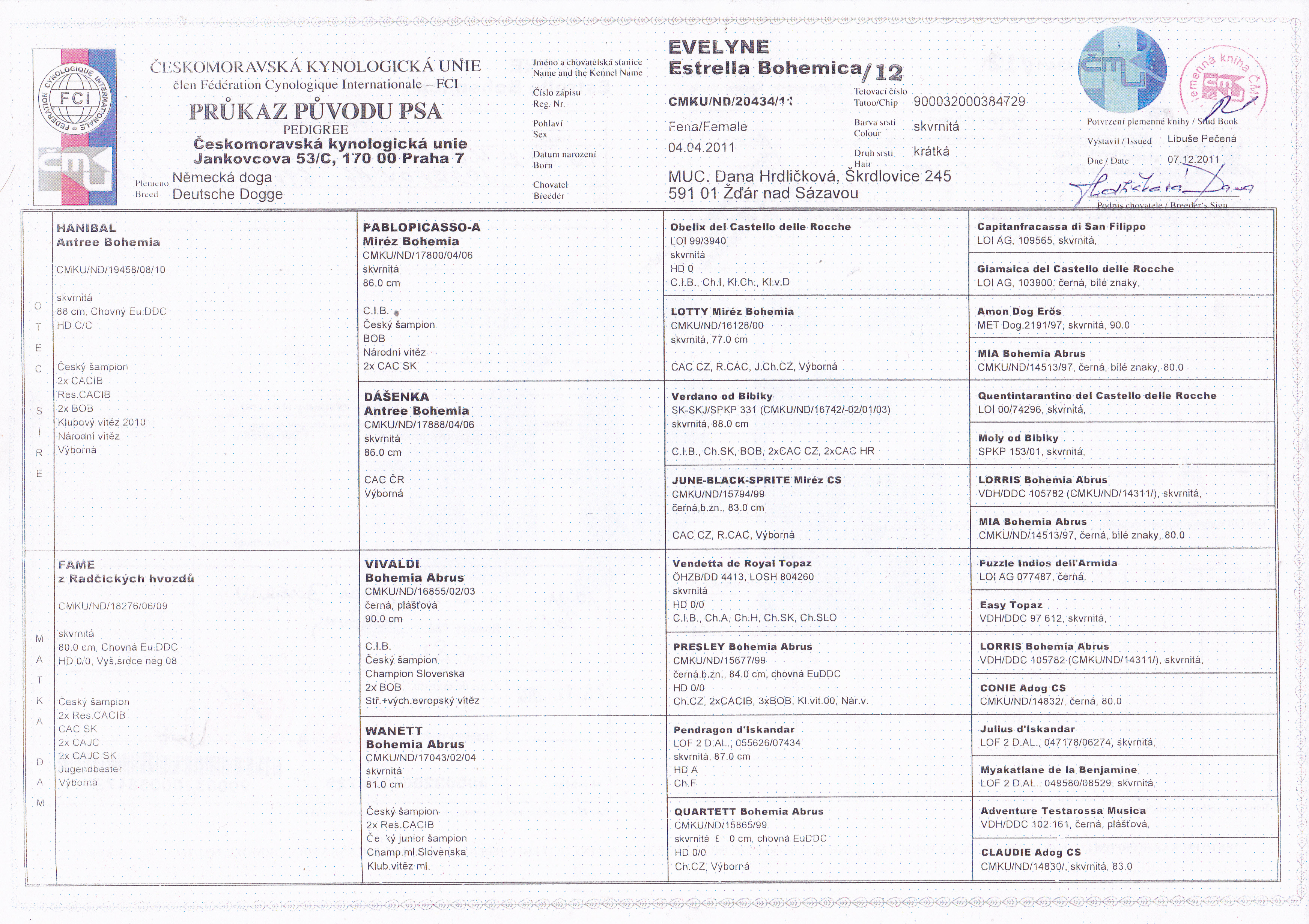 Matka Evelynne Estrella Bohemica, otec Orthon z Josefovských bud.