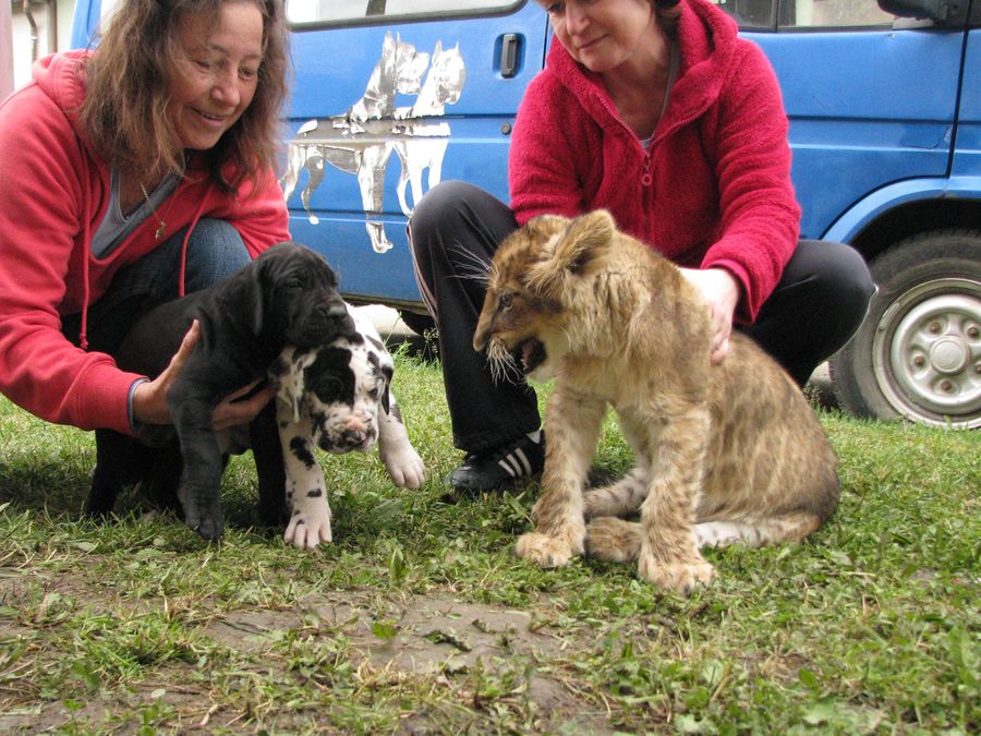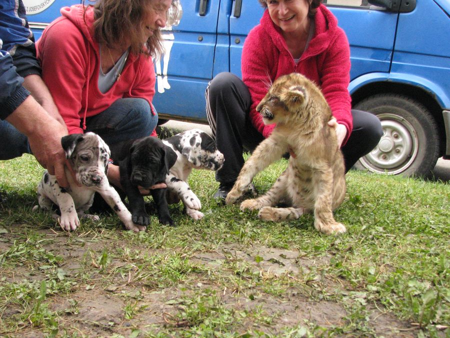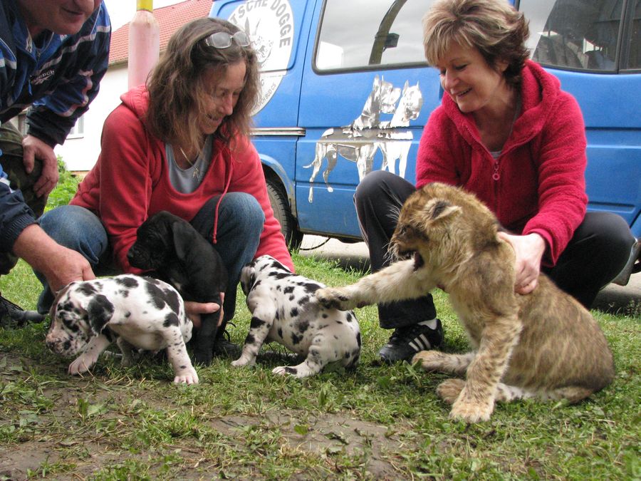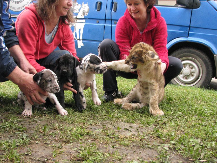 Fotky štěňat s 3-měsíční lvicí