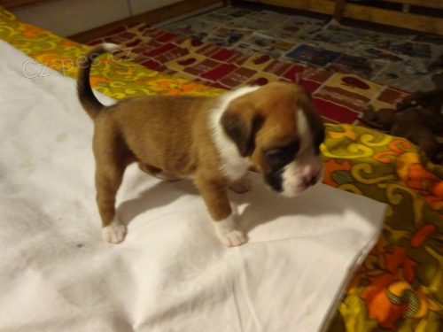 Německý boxer. Prodám štěňata německého boxera s PP po výborných rodičích. Otec Brazil Optima Grata, světový juniorský vítěz, klubový vítěz v CZ, D, SK, PL. Matka Aggy Jafiko, výborná. K odběru jsou dva pejsci barva zlaté s bílými znaky. Budou 3x odčervená, očkovaná, čipovaná, s europasem.