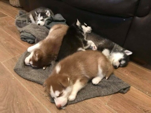 Sibiřský husky - štěňata s PP. Mají krásné zoubky, jsou bez kýly, vhodné jak na chov a výstavy, tak i jako luxusní mazlíčci. Učí se konat potřebu na podložku. Mají první očkování, čip a jsou řádně odčervované. Jsou zvyklé na volný pohyb po bytě. Budou menšího vzrůstu. opravdu kouzelné, úžasní mazlíčci. Již k odběru. S sebou dostanou pelíšek a krmivo do začátku.