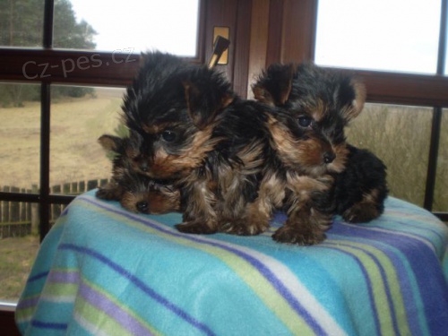 Jorkšírci, štěňátka s PP. Po výstavních rodičích.O. Zachari Coloris Nova po otci importovaném z Anglie, M.Yullia Coloris Nova po otci importovaném z Francie. Předpoklady k uplatnění na výstavách i v chovu. Zdravá, tetovaná, očkovaná, odčervená, bez genetických problémů. Záruka dokonalého exteriéru a povahové vyrovnanosti. Cena 10.000 Kč.Tel. 602641409, mail. zdena.n@mybox.cz