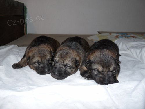 Narodila se nám štěňátka Německých ovčáků s PP z pracovní linie, 5 pejsků a 4 fenky zbarvení tmavě vlkošedé a černé s pálením (menší znaky více černé) otec štěňátek je celočerný mohutný pes Bor z Otova dvoru pes s velkým sebevědomím, s vrozenou dravostí, bojovností a nezkrotným temperamentem, což uplatňuje především při obraně, má velmi razantní obrany s plnými zákusy.
