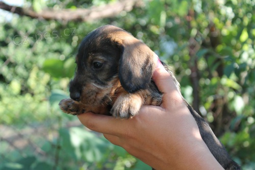 Nabízím k prodeji štěně jezevčíka drsnosrstého s PP po lovecky vedených rodičích. Otec Figaro Horalka: BOB, Nár.vítěz, CAJC, CAC, 2x r.CAC, LZ I.c, ZV I.c, ZN I.c, BZ I.c, Matka: Štěpa z Pekelného kopce: ZN-1.cena, ZV-1.cena, LZ-1.cena, BZ-1.cena, BZH-1. cena (CACT). Výstava: výborná. K odběru konce července. Pro více informací navštivte naše webové stránky: www.drsnaci.wz.cz nebo pište na bara.cermakova@volny.cz nebo volejte na 776/730809