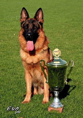 M: výborný, 3 x CAC, res.CACIB, český šampion, zkoušky: ZVV1, IPO1, FPR2, BH. Štěňátka budou k obdběru koncem srpna.