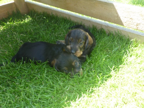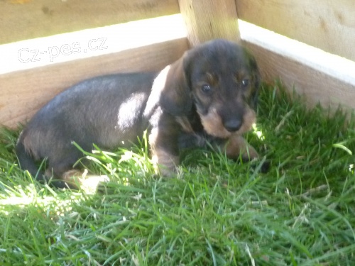 Prodám štěňata jezevčíka drsnosrstého standard s PP po lovecky vedených rodičích.