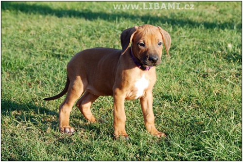 Rhodesian ridgeback – Rhodéský ridžbek – exklusivní štěňátka s PP z vynikajícího vrhu s americkým rodokmenem. Absolutní nepříbuznost – linie USA, RSA, SWE. Veškeré zdravotní testy, včetně testů krve před krytím. DKK, DLK, OCD 0/0, thyroid nadprůměrné funkce a DM vyšetření negativní. Hluboký vztah k plemeni. Nadstandartní podmínky, čisté prostředí. Zdraví a garance. Pouze vážným a seriózním zájemcům o toto skvostné plemeno a do dobrých podmínek! Velmi příznivá cena. Více na www.libami.cz, e-mail: libami@seznam.cz, tel.: 777587649 a 777627575