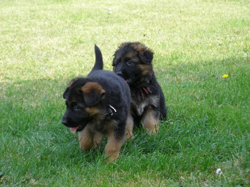 Německý ovčák - štěňata s pp, očkovaná, odčervená. O. Cayys Hartis, m. Rebeka Kondi Nova, oba výborní, I. tř. výběrového chovu. Pouze fenky. Možnost návštěvy po telefonické dohodě. Cena dohodou.