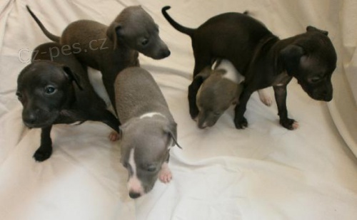 štěňátka italských chrtíků s pp. Spojení česko-kanadské linie. Barva černá a šedá se znaky.Na výstavy, dostihy i na mazlení. Tel.606 171 864