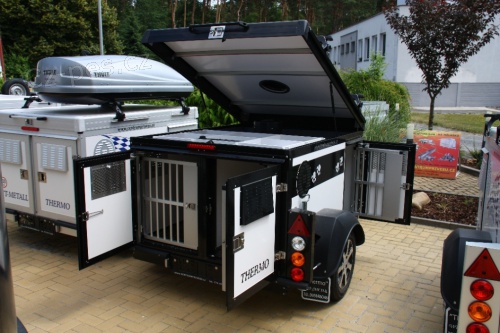 Prodám přívěs na 3 psy, barevné provedení - černá, ALU kola. Koupeno v CZ, první majitel, nehavarované, servisní knížka, německý přívěs WT-METALL pro přepravu 4 psů, jednonápravový nebržděný přívěs, nástavba z izotermických panelů ( v létě se neprohřejí, v zimě neprochladnou ) s ALU hliníkovým eloxovaným ohraněním a nerezovými nýty, odpružená ALKO náprava, výškově nastavitelná oj přívěsu, zadní nastavitelná podpěra, klíny, 13" kola, opěrné kolo, 13pinová elektroinstalace ( nutná pro funkci elektroventilátoru a couvacího světla ), ZDARMA redukce 7-13, AMERICAN světla jsou umístěna pod přívěsem, vnitřní ALU uzamykací dveře s nerezovými panty, vnější dveře uzamykací s odvětrávacími mřížkami a plynovými tlumiči, vnitřní IZO stěny odolné proti poškrábání, odnímatelná zadní dlouhá stěna mezi boxy ( lze vytvořit jeden velký box ze dvou zadních boxů ), elektroventilátor se spínačem, podlážky v jednotlivých boxech, d