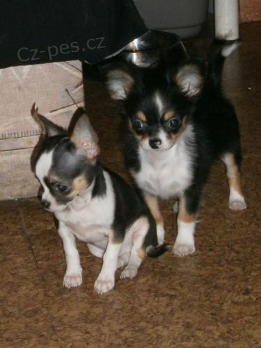 Čivava - dva 2.5měs. pejsky s PP. Jeden je dlouhosrstý a druhý krátkosrstý. Pejsci jsou očkovaní, čipovaní, odčervení, hraví a veselí. Vyrůstají v domácím prostředí. V dospělosti budou malého vzrůstu. Ohledně ceny a dohody volejte. Odběr ihned.