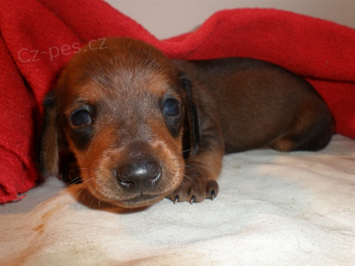 Chovatelská stanice OD LEDNÉHO POTOKA prodá štěně jezevčíka hladkosrstého standardního s PP - červeného pejska. Otec: Český šampion Arny od Turoveckých rybníků, matka: Fidorka od Márfyho. Oba rodiče lovecky vedeni. Pejsek bude několikrát odčervený, očkovaný, tetovaný a plně socializovaný. Chovatelský servis samozřejmostí. K odběru v polovině června.