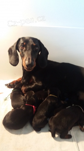 Chovatelská stanice od LEDNÉHO POTOKA prodá štěňata jezevčíka hladkosrstého standardního s PP – v barvě černé s pálením. Oba rodiče lovecky vedeni, předpoklad dobrého exteriéru. Otec: Cliff od Ledného potoka - 3x výborný, CACT, ZV I.c., ZN (84), BZ I.c. Matka: Farah od Ledného potoka – šampion CZ, Národní vítěz, ZV II.c., LZ III.c., Sprulaut II.c., ZN (68) Volné jsou jen fenky. Štěňata budou několikrát odčervená, očkovaná, tetovaná, s kupní smlouvou a plně socializovaná. Chovatelský servis samozřejmostí. Odběr koncem června. Cena: dohodou Více na: www.odlednehopotoka.cz Kontakt: 604855327