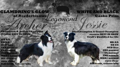 Chovatelská stanice „Legemond“ nabízí k rezervaci štěňátka Border kolií s odběrem možným od 14.10.2017. Narozena 24.8.2017. Oba rodiče vynikají perfektním zdravím a typickým exteriérem. Matka Interšampion, Multišampion, White And Black Gasko Prim (zdraví: DKK 0/0, DLK 0/0, OCD negativní, CEA normal, TNS normal, CL normal, Vyšetření očí - negativní). Zkoušky: ZVOP(pasení), ZOP(poslušnost), A1(agility) Otec import Srbsko Šampion, Junioršampion, Junbest in Show Glamdrings Glow of Bordertreowe (zdraví: DKK 0/0, DLK 0/0, OCD negativní, CEA normal, TNS normal, CL normal, MDR1 +/+, IGS normal, Vyšetření očí - negativní). Jedná se o první vrh otce, potomci matky s jedinečnou povahou, skvělé zdravotní, sportovní i výstavní výsledky. V době odběru jednou očkovaní, pravidelně odčervovaní, čipovaní s kupní smlouvou. Hledáme budoucí majitele, kteří nabídnou to, co ke spokojenému životu BOC potřebuje. Netrváme na účasti na výstavách, požadujeme zodpovědnou výchovu a kupu lásky pro naše štěňátka! Město: Hradec Králové / Praha Web: http://www.legemond.eu