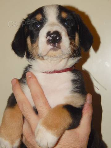 Entlebušský salašnícky pes - Chovateľská stanica s 20ročnou tradíciou chovu Entlebušského sal. psa zadá šteniatka s PP po výborných rodičoch, rodičia šampióni, obaja HD- A, ED -1, OCd 0/0, testované ektopické uretre v Rakúsku. Matka je JCH. Honda pride of Justin , EU -A, dcéra Dcéra Multi CH. Crufts Winner, European Winner ICH. Fresh Energy Am Number One Otec: MultiCH, Int CH., Grand CH. Bart from Wealth Island. Testy očí na PRA - obaja A typ, teda všetky šteniatka budú mať zdravé oči na PRA, nebudú ani prenášači PRA génu. Ide o menšieho, krátkosrstého brata Bernského salašníckeho psa, výborný rodinný pes a strážca, ale nie agresívny, neuteká. Šteniatka budú čipované, pri odchode 2 x očkované, s EU pet pasom na cestovanie aj do zahraničia. Cena od EUR 700 - 1000 podľa kvality, dober od polovice Decembra. Druhý vrh po JCH. CH. Harisma Pride of Justin, otec: Multi CH. Int. CH, Grand CH. Champion of CHampions Bart from Wealth Island na odber začiatkom Februára . Bývame v Častej, okres Pezinok, SR. Viac info na Liptajova.jana@mail.t-com.sk alebo +421918850615 Web: http://www.schweizersennenhunde.eu